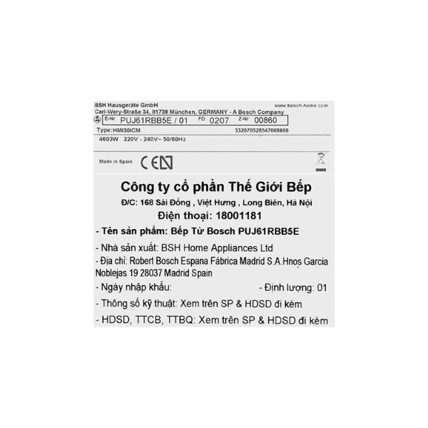 - Bếp từ 3 vùng nấu Bosch PUC631BB5E seri 4 có công suất lên tới 4600W, vùng trái 2200/3700W – Vùng phải trên 1400W/2200W – Vùng phải dưới 1800W/3100W. Kích thước vùng nấu: Trái Ø 24 cm – Phải trên Ø 14.5 cm – Phải dưới Ø 18 cm.