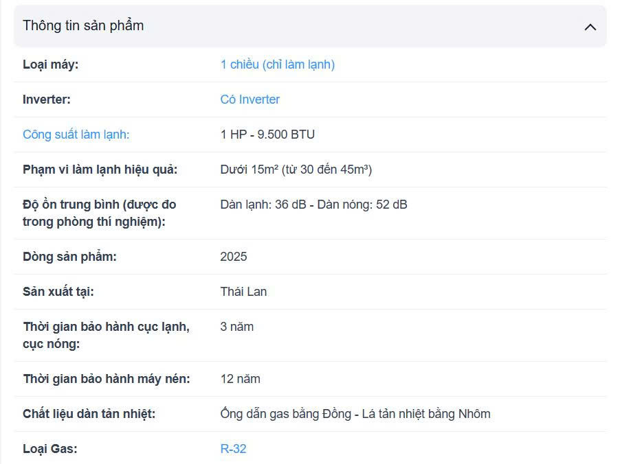 - Thiết bị sử dụng gas R32 thân thiện với môi trường đồng thời đảm bảo hiệu suất làm lạnh.