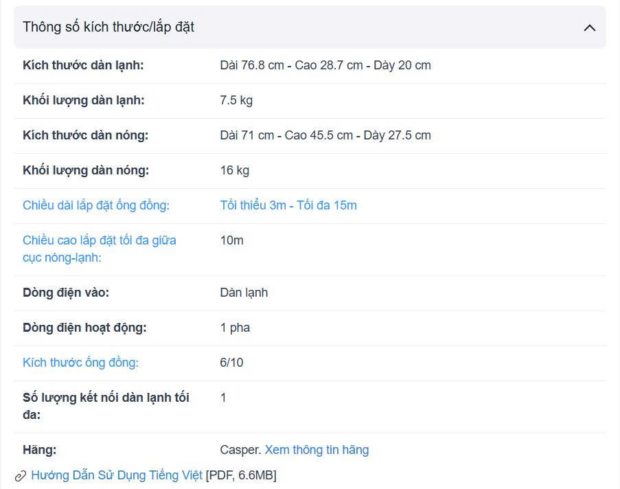 - Điều hòa Casper sở hữu thiết kế treo tường hiện đại, tiết kiệm không gian, kết hợp với gam màu trắng thanh lịch giúp sản phẩm dễ dàng hài hòa với nhiều phong cách nội thất.