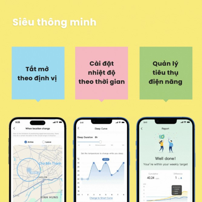 Tùy chỉnh chế độ ngủ theo thói quen cá nhân với thời gian, nhiệt độ và tốc độ quạt, giúp bạn ngủ ngon hơn.