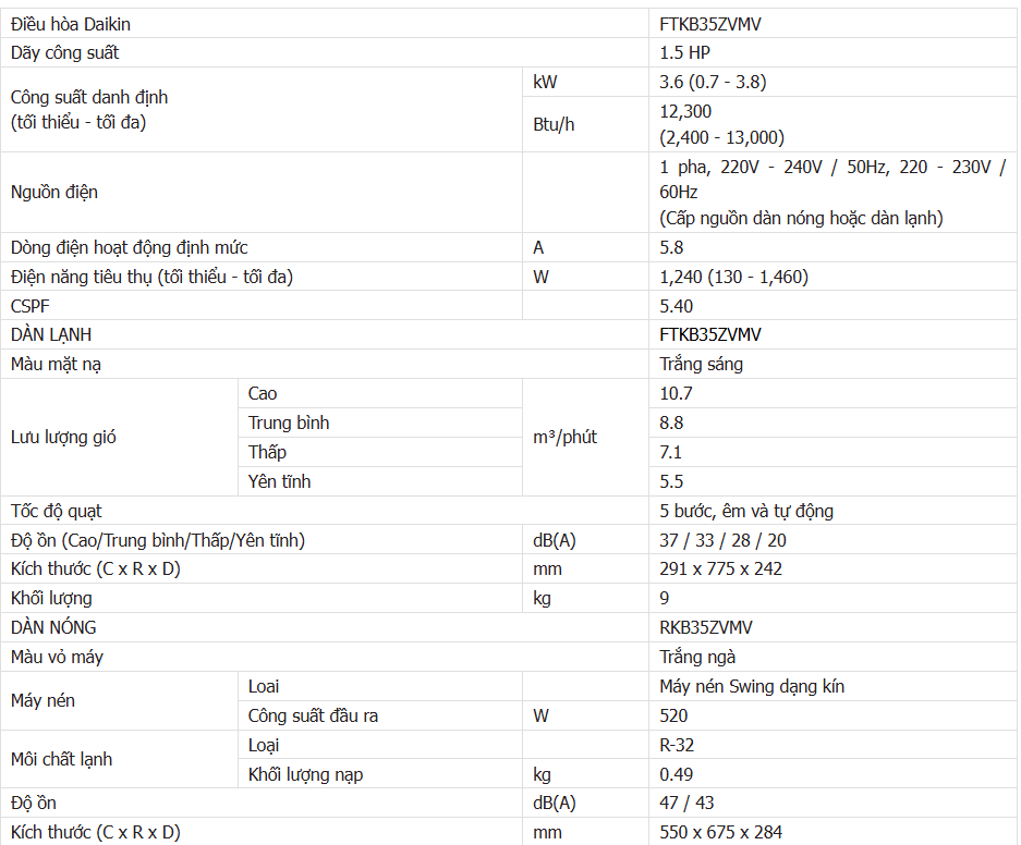 Điều hoà Daikin 1 chiều 12000BTU inverter FTKB35ZVMV sử dụng gas R32 model điều hòa Daikin mới nhất 2025 sẽ thay thế cho model trước đó FTKB35YVMV và được dự báo tiếp tục nối tiếp sức hút đặc biệt với người tiêu dùng bởi những tính năng, công nghệ vượt trội.