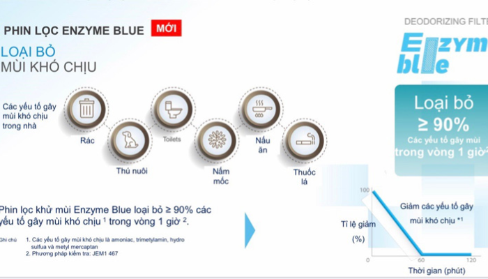 Tấm lọc này tạo ra 1 lớp lá chắn bảo vệ đưa ra giải phát tối ưu nhằm mang lại bầu không khí trong lành cho căn phòng của bạn. Phin lọc Enzyme Blue sẽ khử được mùi hôi khó chịu, ẩm mốc và các tác nhân gây dị ứng hiệu quả tới 99,9%.