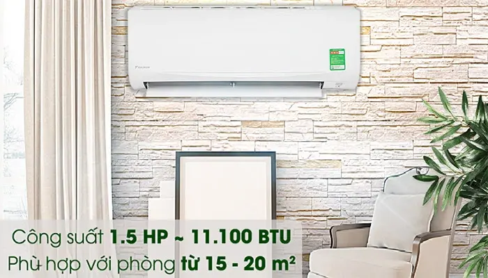 Công nghệ làm lạnh của điều hòa Daikin 1 chiềuCông suất làm lạnh 12000BTU, nên máy điều hòa Daikin FTKF35XVMV có khả năng làm mát cho các căn phòng có diện tích từ 15 – 20m2 như: phòng ngủ hay phòng làm việc.