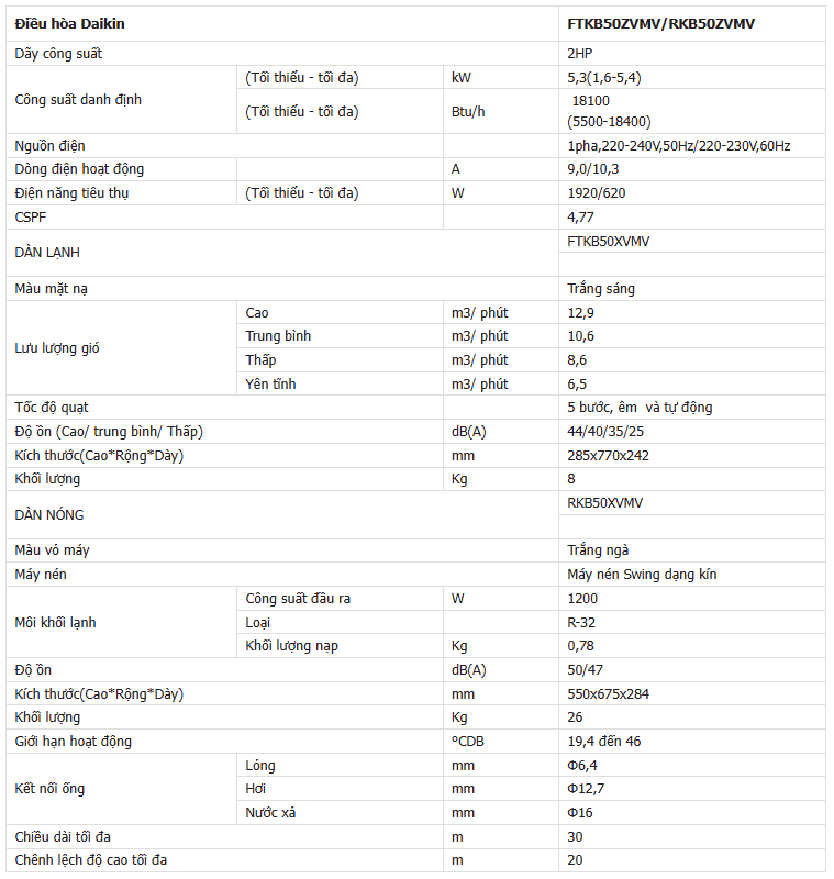 Điều hòa Daikin inverter 18000 BTU 1 chiều FTKB50ZVMV sử dụng gas R32 model mới nhất chính thức bán ra thị trường nước ta trong năm 2025 nhằm thay thế cho model trước đó FTKB50YVMV.