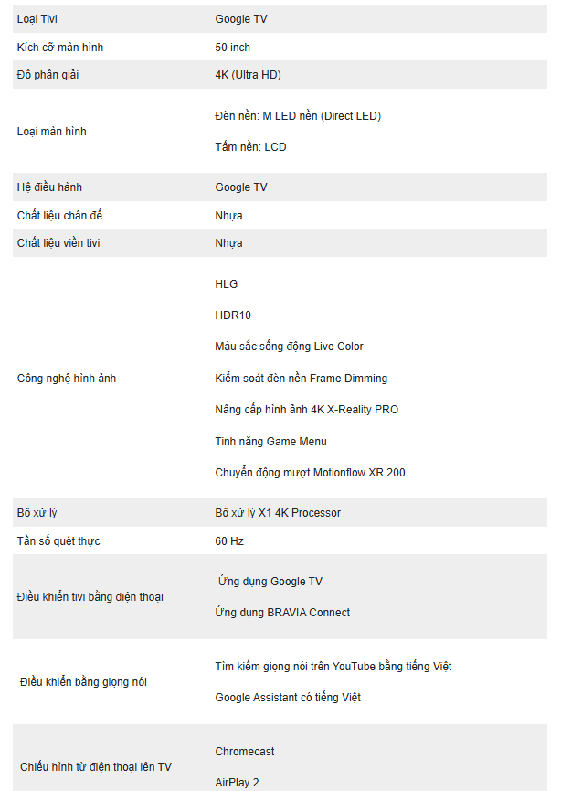 Google Tivi Sony 4K 50 inch K-50S25VM2 là lựa chọn đáng cân nhắc cho những ai tìm kiếm một chiếc tivi kích thước vừa phải, hình ảnh sắc nét, âm thanh sống động và hỗ trợ các tiện ích thông minh, phù hợp với không gian sống hiện đại.