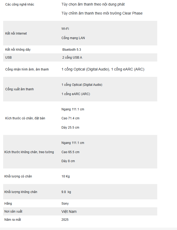 - Công nghệ Clear Phase trên mẫu tivi Sony Bravia này giúp tinh chỉnh tần số âm, tái tạo âm thanh rõ ràng và tự nhiên hơn, thể hiện tốt các đoạn thoại và các chi tiết âm thanh nhỏ.