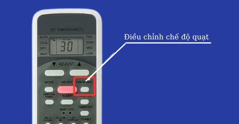 Bạn chỉ cần ấn phím FAN SPEED trên remote để điều chỉnh tốc độ quạt. Sau mỗi lần ấn, tốc độ quạt sẽ tăng dần đến mức lớn nhất, nếu bạn vẫn tiếp tục tăng tốc độ máy sẽ tự động chuyển về trạng thái AUTO.
