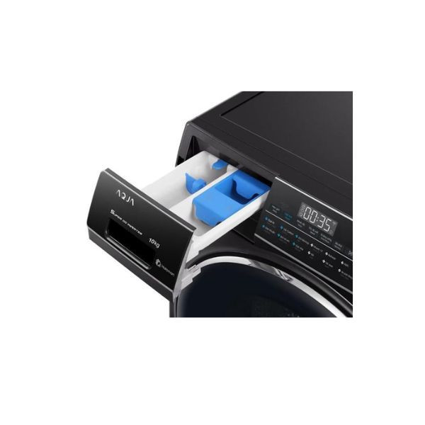 Máy giặt Aqua Inverter 10 kg AW10-B4959U1K(B) sở hữu kiểu dáng hiện đại với lồng ngang - cửa trước, dễ dàng hòa hợp cùng nhiều phong cách nội thất gia đình.