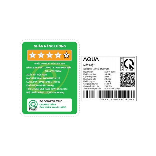 Máy giặt Aqua Inverter 10 kg AW10-B4959U1K(B) với khối lượng giặt 10 kg, công nghệ giặt hơi nước Refresh, động cơ truyền động trực tiếp bền bỉ và nhiều tiện ích thông minh, AW10-B4959U1K(B) là lựa chọn lý tưởng cho gia đình 5 - 7 người. Sản phẩm đặc biệt phù hợp cho những ai thường xuyên bận rộn, muốn tiết kiệm thời gian giặt giũ mà vẫn đảm bảo quần áo luôn sạch sẽ, thơm tho và được chăm sóc tốt nhất.