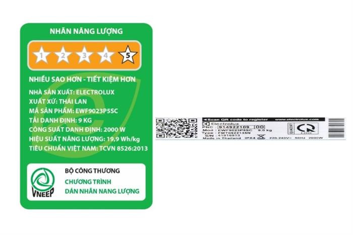 Khoảng khối lượng giặt Từ 9 - < 10 Kg