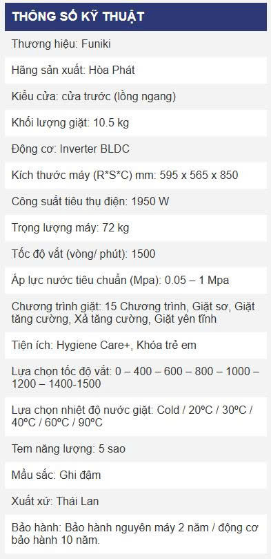 Máy giặt Funiki inverter HWM F8105ADG – Công nghệ giặt hơi nước Hygiene Care+