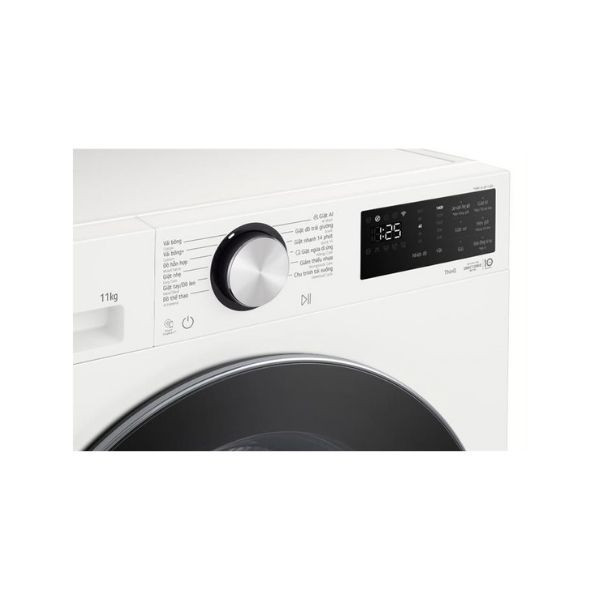 | Tiện ích | Đèn chiếu sáng lồng giặt Vệ sinh lồng giặt Khóa trẻ em Hẹn giờ giặt Chỉnh nhiệt độ nước Âm báo Kết nối wifi và điều khiển từ xa qua ứng dụng LG ThinQ Khóa cửa máy Làm sạch ngăn bột giặt |