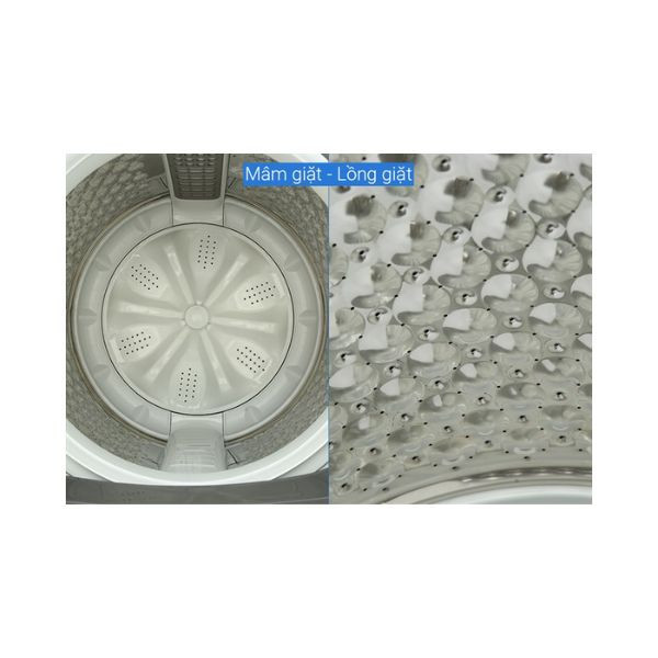 - Lồng giặt được làm từ thép không gỉ bóng sáng, hạn chế rỉ sét, thiết kế với nhiều lỗ nhỏ để đảm bảo quá trình giặt giũ trơn tru, hiệu quả.