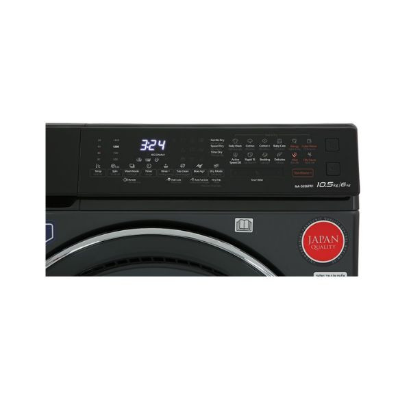 Tóm lại, máy giặt sấy Panasonic Inverter 10.5 kg NA-S056FR1BV có bảng điều khiển hiện đại, hỗ trợ công nghệ giặt tiên tiến như UV Blue Ag+ cho khả năng diệt khuẩn cao, công nghệ giặt nước nóng StainMaster+ đánh bật các vết bẩn cứng đầu, tăng hiệu suất làm sạch và tiết kiệm điện năng với công nghệ 3Di Inverter và cảm biến Econavi, có 16 chương trình hoạt động cài đặt sẵn tiện dụng, điều khiển dễ dàng qua Smartphone, cho khối lượng giặt 10.5 kg, khối lượng sấy 6 kg, sản phẩm phù hợp với gia đình có trên 7 người.