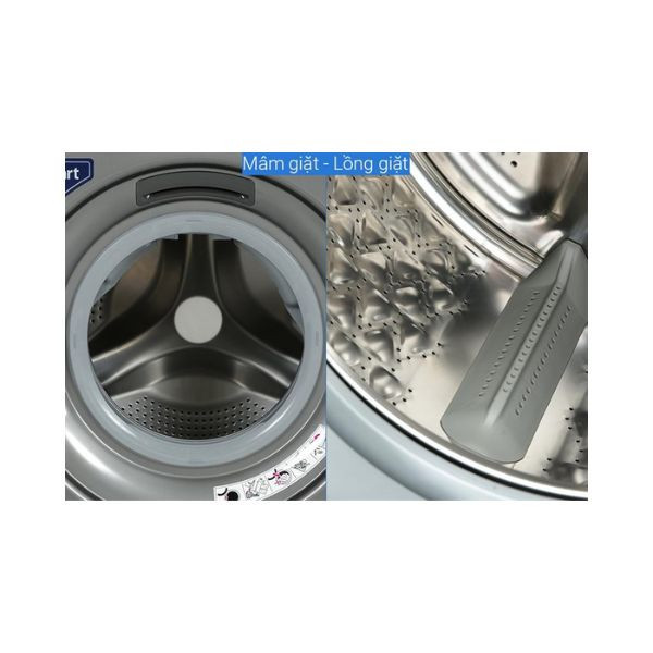 - Lồng giặt bằng thép không gỉ có độ sáng bóng cao, bền bỉ, cấu trúc lồng giặt đảm bảo hiệu quả giặt đồ tối ưu đồng thời giúp giảm các mảng bám, bụi bẩn, vi khuẩn tích tụ.