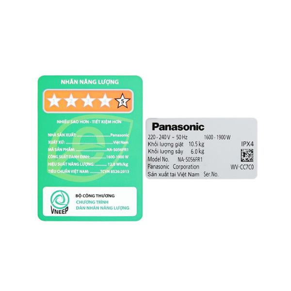 - Nhãn năng lượng sản phẩm đạt chuẩn 5 sao, hiệu suất sử dụng điện 12.8 Wh/kg.