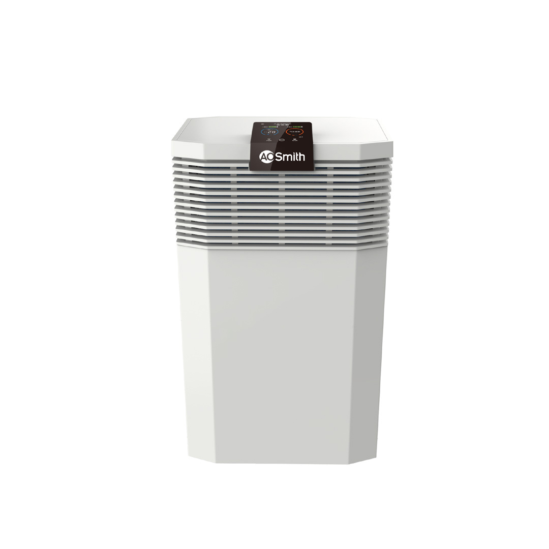 + Máy lọc không khí A. O. Smith (KJ500F-B01) công suất lọc (CADR) 500m3/h chỉ cần 24 phút làm sạch không khí ô nhiễm nặng bụi PM2.5 mức độ 1000mcg/m3, trong phòng 26m2.