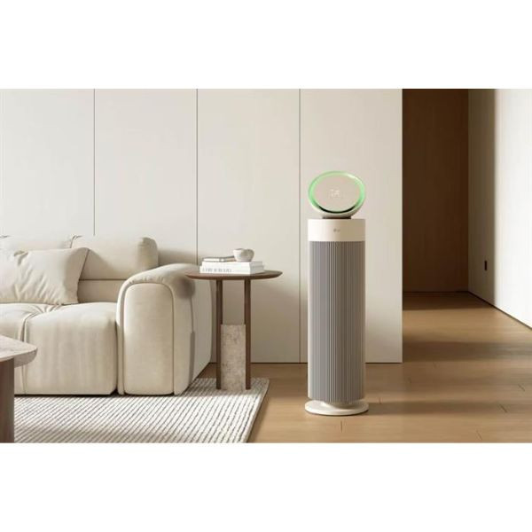 - Máy lọc không khí LG PuriCare Aero Booster có kiểu dáng hình trụ đứng nhỏ gọn, thiết kế độc đáo, tinh tế với màu be trang nhã, góp phần làm tăng tính thẩm mỹ cho ngôi nhà.
