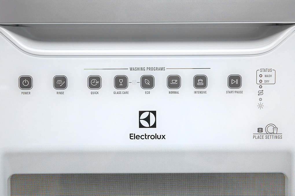 Máy rửa chén Electrolux mini với công suất 1480W rửa bát đĩa nhanh chóng, sạch bóng một cách dễ dàng và có thể rửa 8 bộ đồ ăn châu Âu, tương đương với 2 bữa ăn Việt của gia đình từ 2 - 3 người.