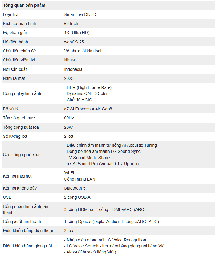 Tổng quan thiết kế Smart Tivi LG QNED AI 4K