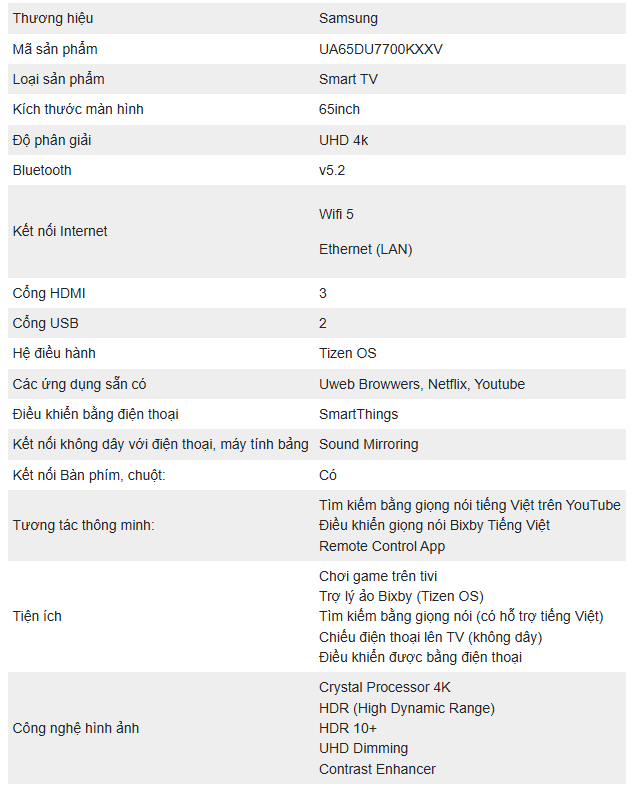 Smart Tivi Samsung 4K 55 inch UA55DU7700KXXV Mới 2024 - Choáng ngợp trước dải màu sắc hiển thị rộng lớn và rực rỡ từ công nghệ PurColor. Đắm chìm trong từng khung hình sống động và chân thực như bước ra từ cuộc sống.