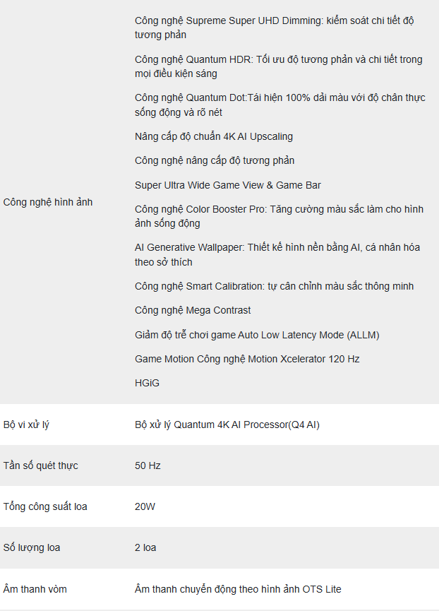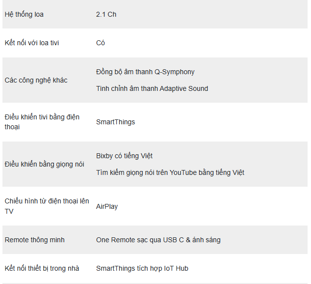 - Công nghệ Q-Symphony: Thăng hoa cùng những âm thanh sống động và chân thực, được đồng bộ liền mạch giữa TV và loa thanh, kiến tạo không gian giải trí đỉnh cao, bao trùm mọi giác quan.