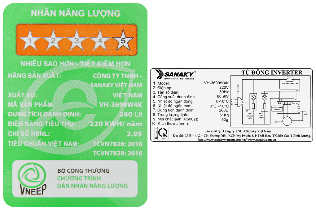 | Số ngăn | 1 ngăn mát, 1 ngăn đông |