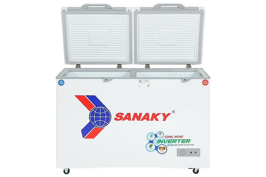 - Lòng tủ đông Sanaky này bằng hợp kim nhôm sơn tĩnh điện, thiết kế bằng phẳng vừa giữ lạnh tốt vừa dễ dàng khi vệ sinh.