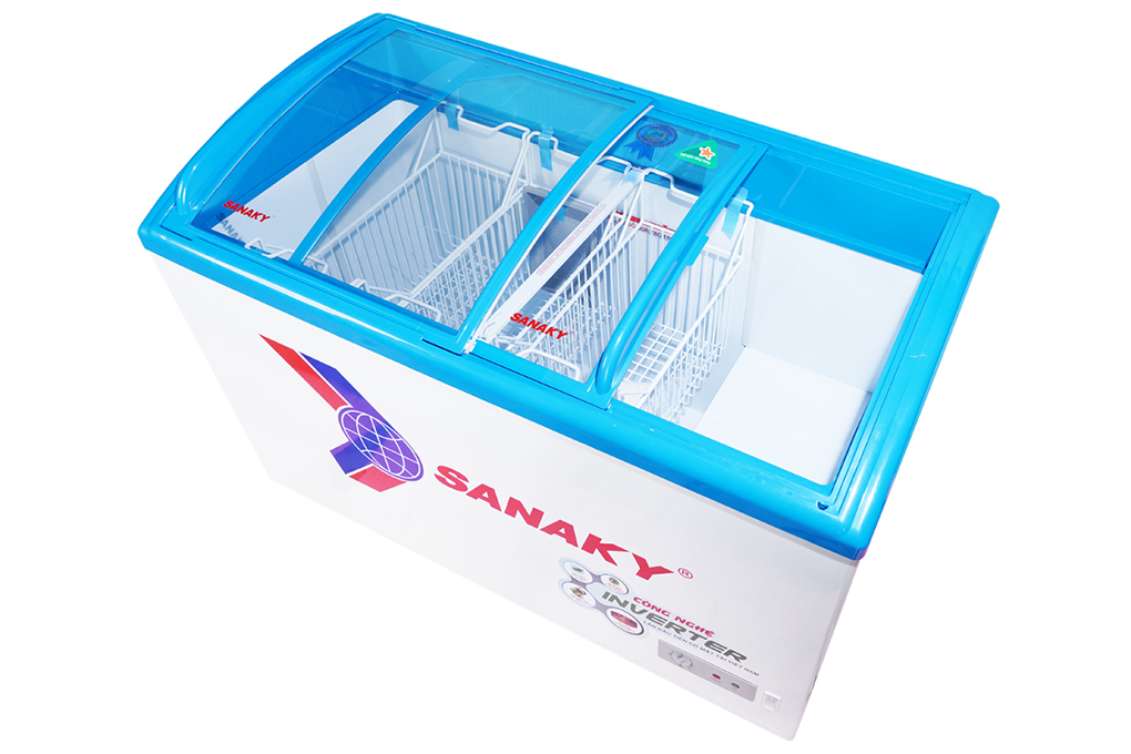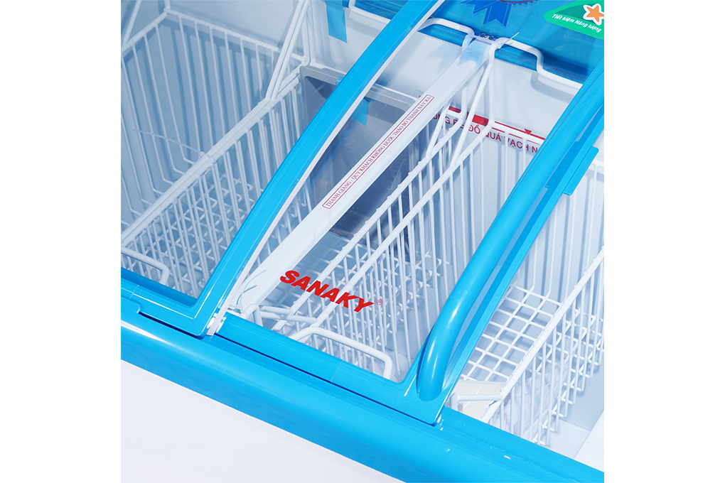 2 chức năng: bảo quản và trưng bày sản phẩm: Bề mặt kính có phủ lớp phản xạ nhiệt hạn chế tối đa việc hấp thụ nhiệt và thoát nhiệt lạnh ra ngoài, điều này giúp cho tủ đông sanaky vh-4899k3 tiết kiệm điện.