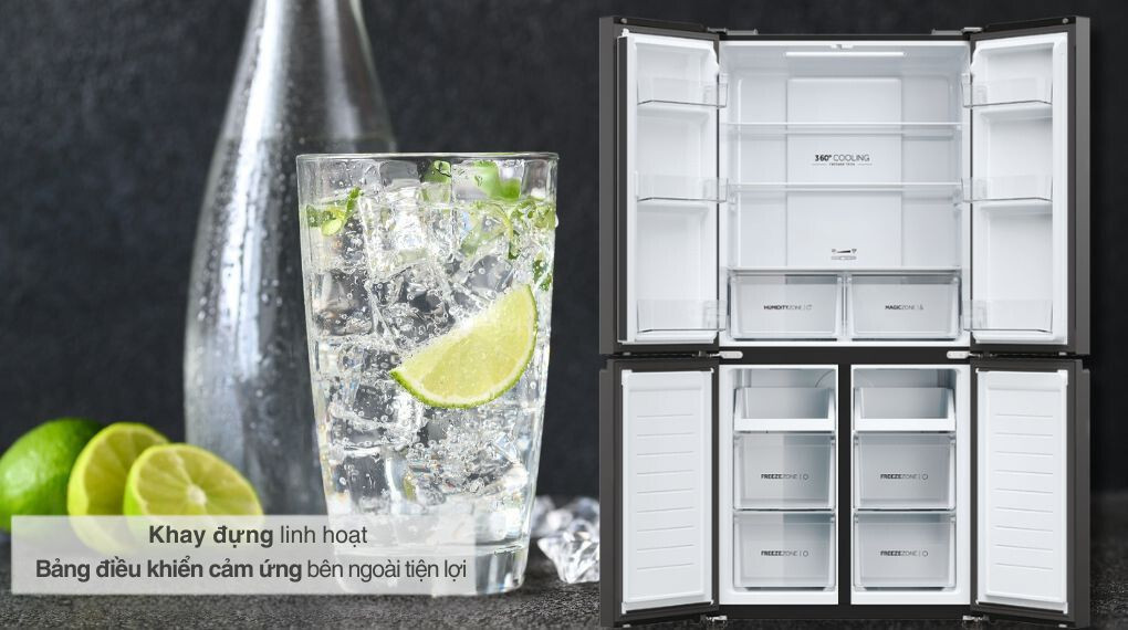 - Thực phẩm, đồ uống được lưu trữ, cất giữ trong tủ sẽ luôn giữ được độ tươi ngon nhờ công nghệ làm lạnh đa chiều. Các luồng khí lạnh sẽ được lan tỏa đến mọi không gian bên trong tủ, làm lạnh đều cho cả thực phẩm và đồ uống.