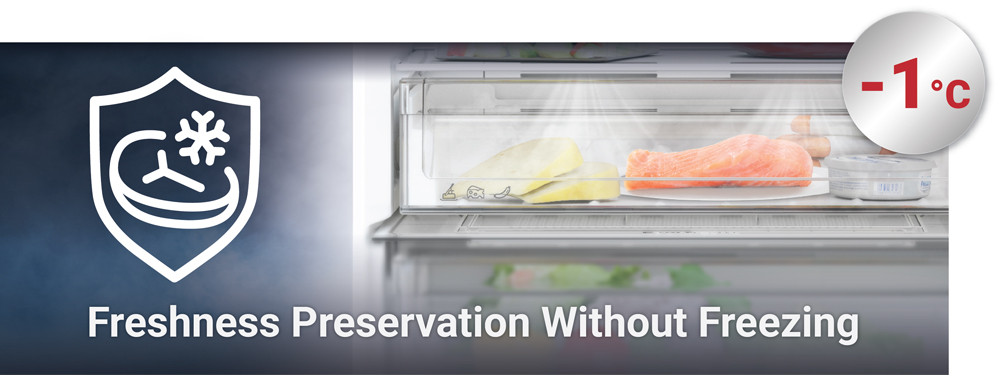 Duy trì hương vị tươi ngon và cấu trúc thực phẩm tối ưu, ngăn chặn sự chảy nước gây mất chất dinh dưỡng ở nhiệt độ lưu trữ khoảng -1°C* Freshness Preservation**.