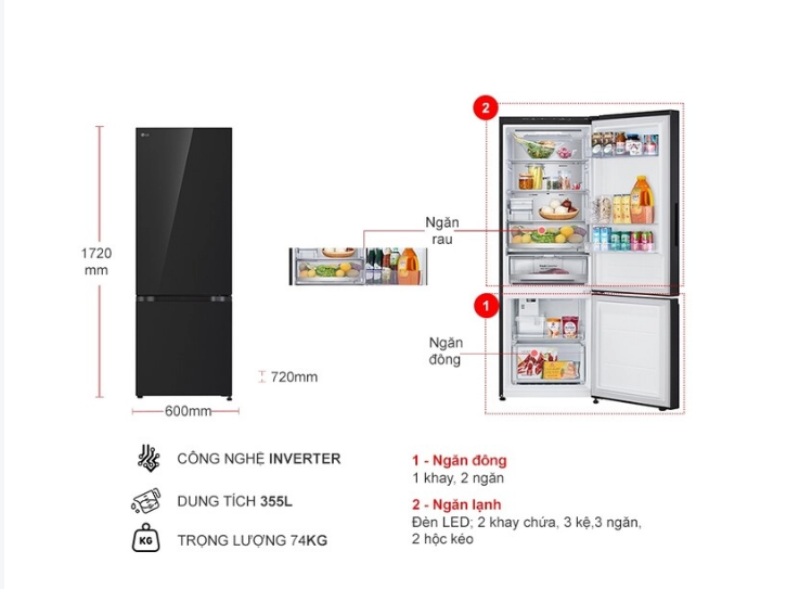 Sản phẩm thuộc dòng tủ lạnh ngăn đá dưới, thay vì phải cúi người, giờ đây người dùng đã có thể lấy/cất thực phẩm trong ngăn mát một cách thuận tiện, dễ dàng. Bên trong tủ được chia thành nhiều ngăn bằng các khay kính cường lực chắc chắn. Do đó người dùng có thể an tâm khi lưu trữ những thực phẩm có trọng lượng hơi nặng một chút.