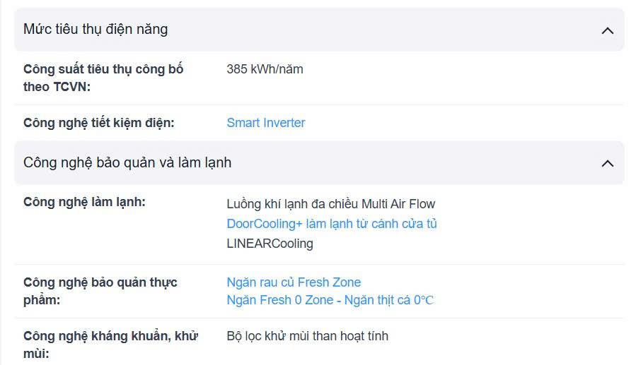 - LINEARCooling: giữ nhiệt độ ổn định, đảm bảo độ tươi ngon của thực phẩm.