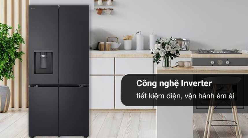 - Tủ lạnh LG Inverter 571 lít Multi Door LFD58BLGA được trang bị công nghệ Inverter tiên tiến, mang đến khả năng tiết kiệm điện năng vượt trội. Công nghệ này giúp điều chỉnh công suất hoạt động của máy nén một cách linh hoạt, phù hợp với nhu cầu làm lạnh thực tế, từ đó giảm tiêu thụ điện năng đáng kể. Ngoài ra, công nghệ Inverter còn đảm bảo tủ lạnh vận hành êm ái, hạn chế độ ồn và duy trì nhiệt độ làm lạnh ổn định, giúp bảo quản thực phẩm luôn tươi ngon trong thời gian dài.