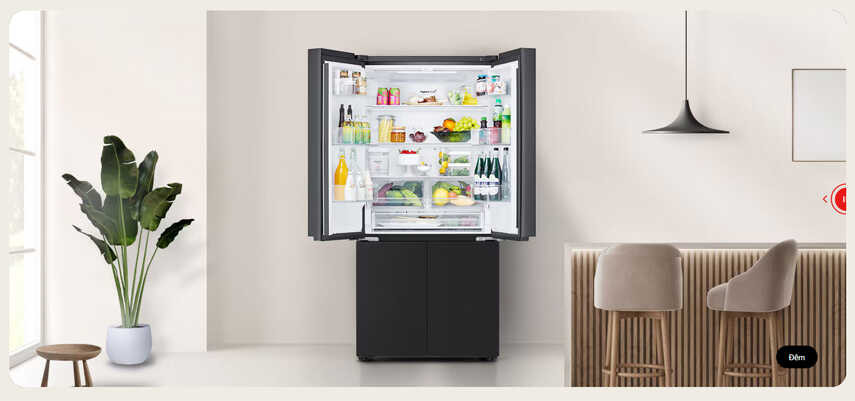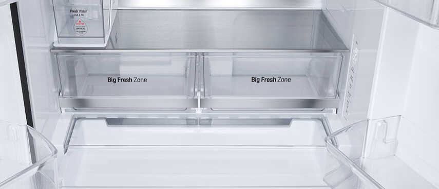 - Tủ lạnh được trang bị ngăn rau củ Big Fresh Zone có dung tích lớn hơn so với các ngăn Fresh Zone thông thường. Thiết kế này giúp duy trì độ ẩm tối ưu, giữ cho rau củ luôn tươi ngon và không bị lẫn mùi với các thực phẩm khác. Nhờ đó, rau củ được bảo quản trong ngăn riêng biệt sẽ luôn giữ được hương vị tự nhiên và chất lượng tốt nhất.
