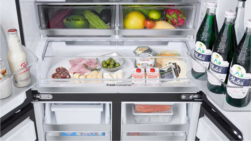 - Ngăn đông mềm Fresh Converter+ bên trong tủ lạnh LG 4 cánh LFD58BLGA đã được thiết kế để người dùng có thể điều chỉnh mức nhiệt độ phù hợp với loại thực phẩm cần bảo quản. Mức nhiệt độ dao động của ngăn lưu trữ là -3℃, 0℃ và 3℃ nên rất phù hợp để bảo quản thịt, cá và cả rau củ. Thực phẩm được bảo quản ở mức nhiệt tối ưu sẽ giữ được độ tươi ngon và các dưỡng chất lâu dài.
