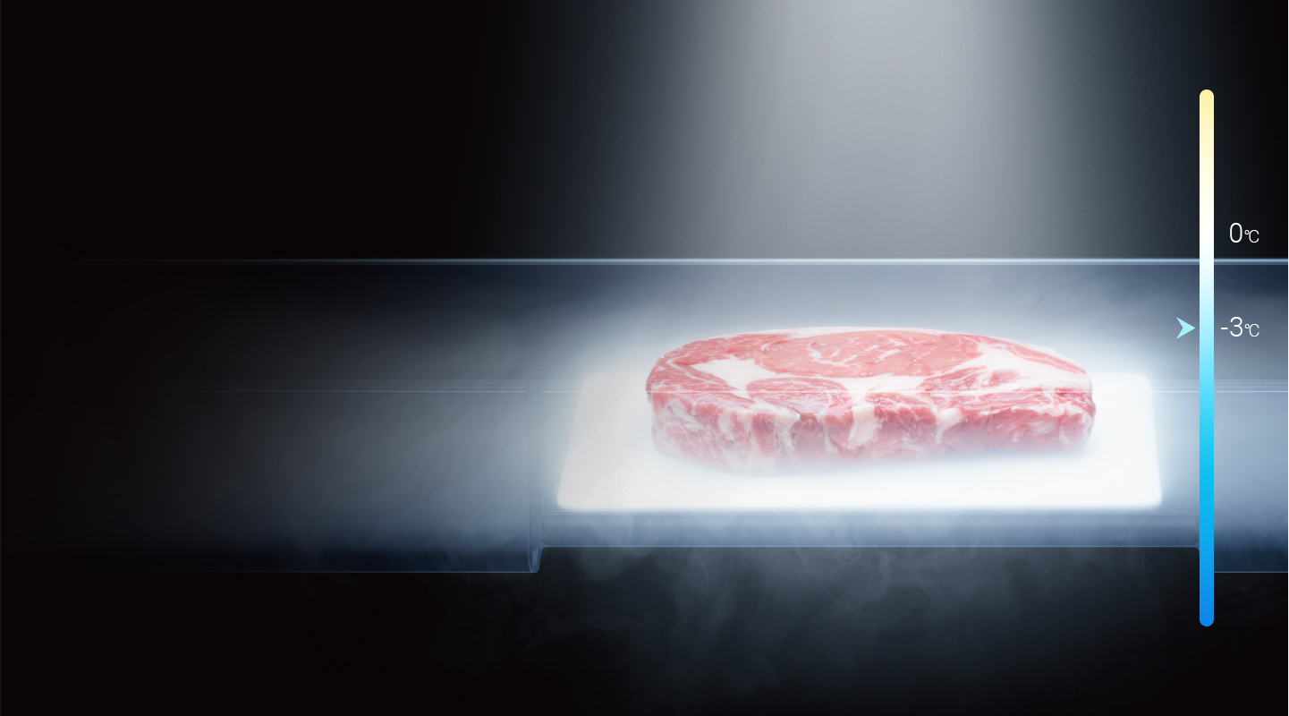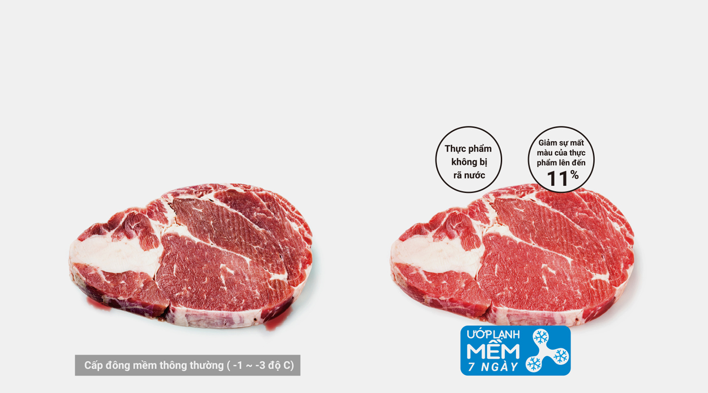 Ngăn ướp lạnh mềm 7 ngày lưu trữ thịt, cá và thực phẩm tươi sống. Thực phẩm được lưu trữ ở nhiệt độ từ -3℃ đến 0℃ mà không bị đông đá, giúp bảo quản trọn vẹn hương vị tươi ngon. Thực phẩm có thể được chế biến bất cứ khi nào mà không cần rã đông.