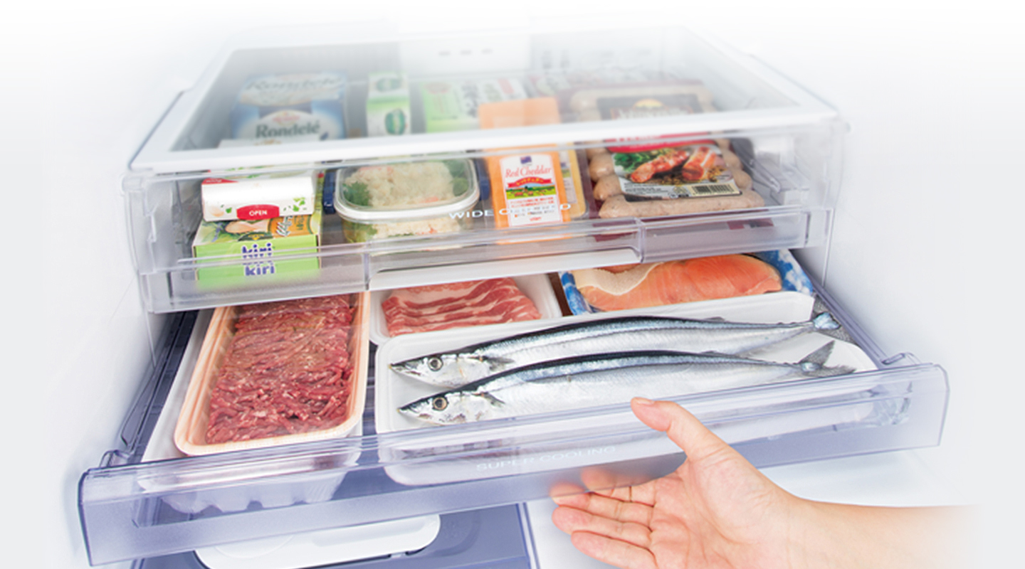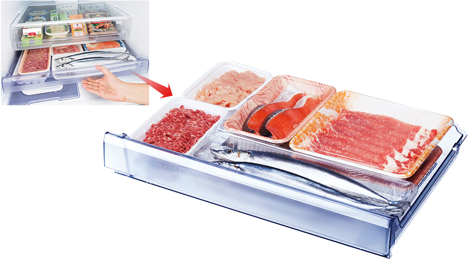 Thực phẩm sẽ được bảo quản tươi ngon trong ngăn ướp lạnh mềm, với công nghệ độc quyền từ Mitsubishi.