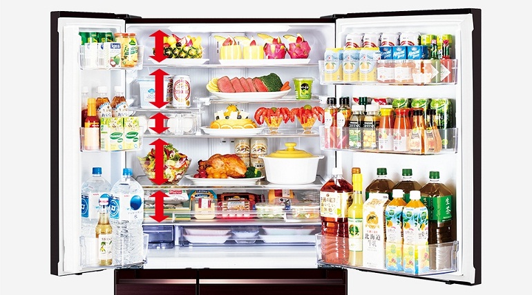 Tủ lạnh thiết kế ngăn kệ có thể thay đổi, di chuyển linh hoạt, thuận tiện hơn khi xếp đặt, lưu trữ nhiều loại thực phẩm, đồ uống với kích thước khác nhau.