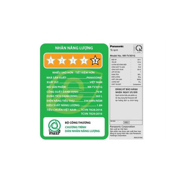| Công suất tiêu thụ công bố theo TCVN | 356 kWh/năm |
