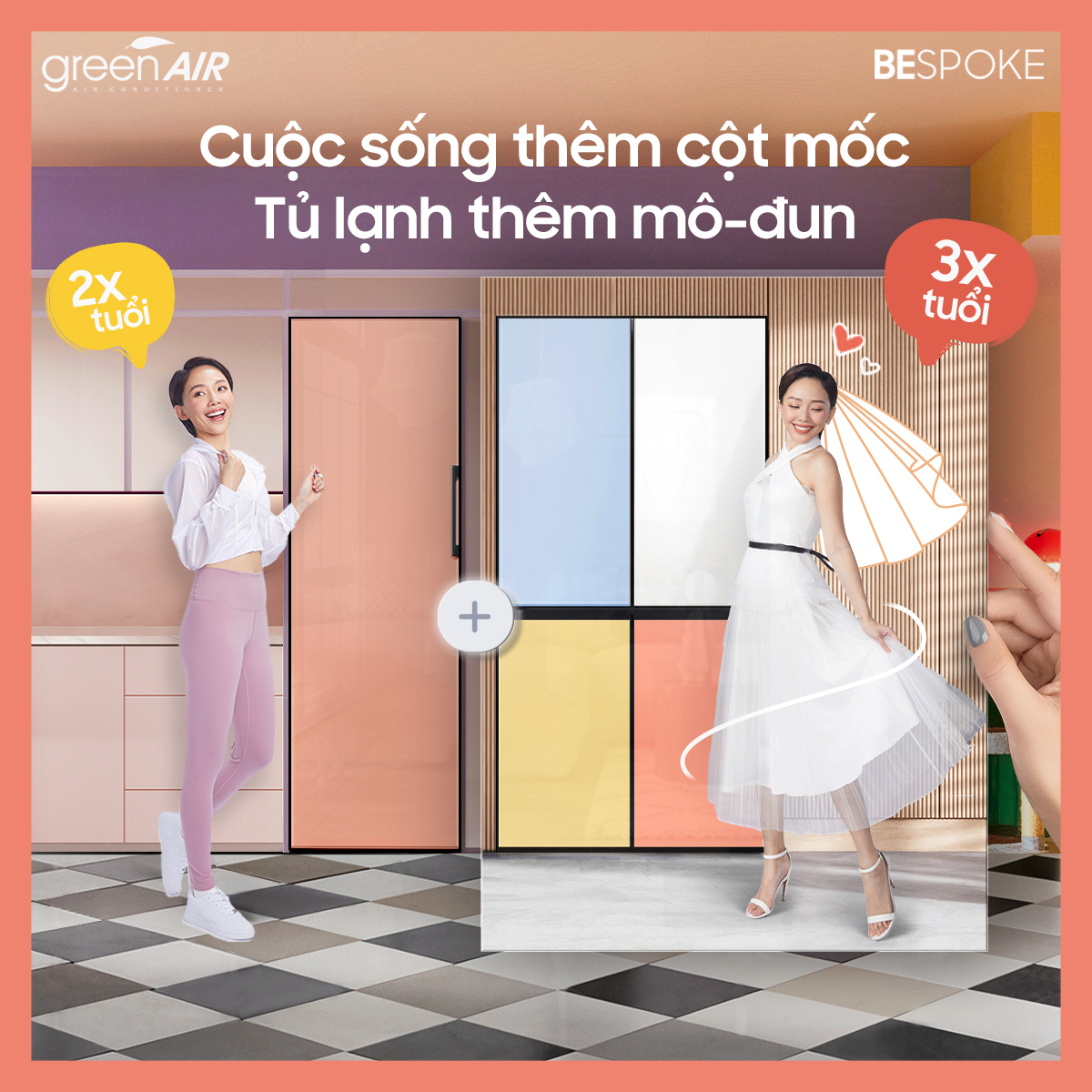Với thiết kế mô-đun linh hoạt, Bespoke cho phép bạn kết hợp các dòng tủ lạnh với nhau: khởi đầu cuộc sống độc thân với tủ lạnh 1 cửa, thoải mái ghép thêm tủ lạnh khi kết đôi và khi gia đình có thêm thành viên mới. Không cần bỏ hoặc thay thế tủ hiện tại, Bespoke luôn sẵn sàng “lớn lên” theo những giai đoạn cuộc sống của bạn.