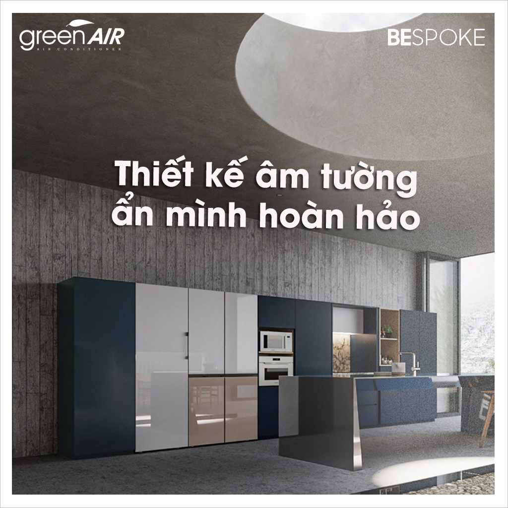 Bespoke mở ra ngôn ngữ mới cho thiết kế tủ lạnh và phá vỡ mọi quy chuẩn thông thường. Với thiết kế hoàn hảo không một chi tiết thừa, tinh tế trong từng đường nét, mang đến hiệu ứng thị giác hoàn hảo cho căn bếp của bạn. Bespoke ẩn mình trong mọi căn bếp nhờ thiết kế âm tường xóa bỏ khoảng trống giữa tủ lạnh và tường xung quanh; cùng bản lề đặc biệt tạo sự liền mạch giữa tủ lạnh với tủ bếp ngay khi bạn đóng/ mở cửa tủ mà không bị cản trở bởi vật cản xung quanh.