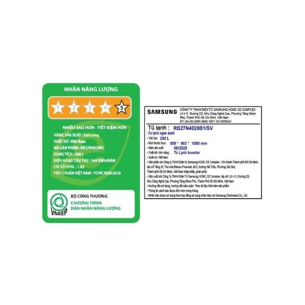 | Công suất tiêu thụ công bố theo TCVN | 369 kWh/năm |