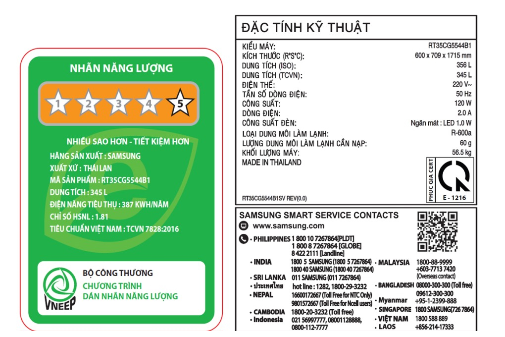Dung tích thực: 345 lít