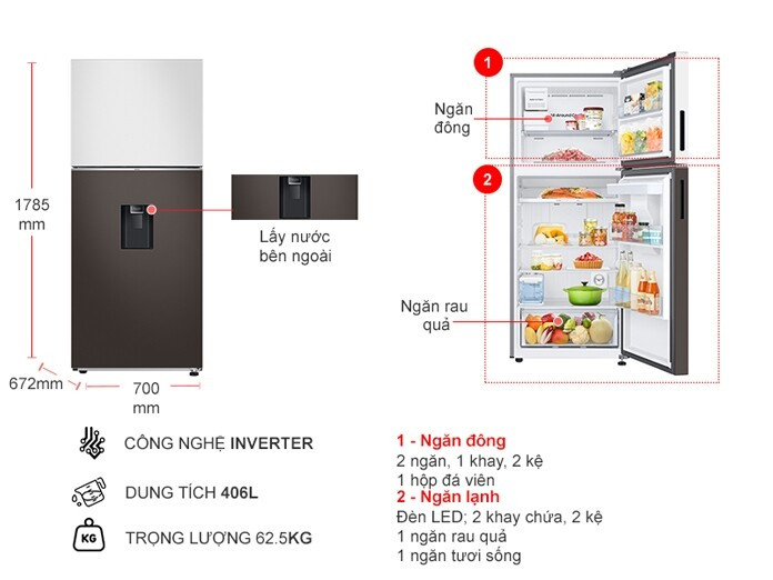 Không gian lưu trữ rộng rãi với dung tích tới 406 lít