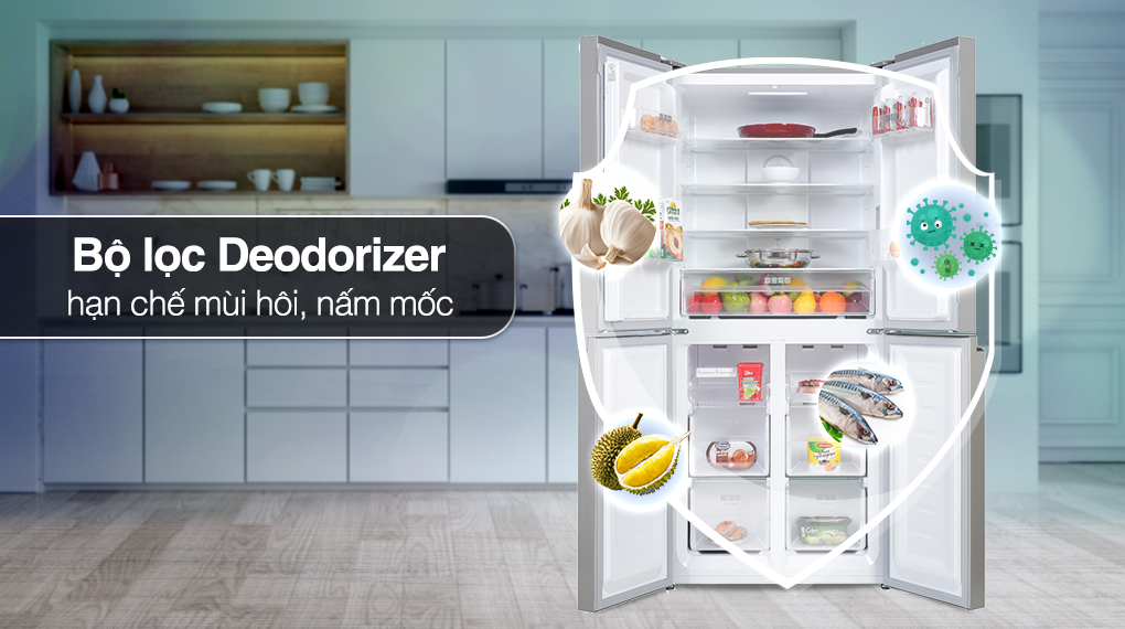 Bộ lọc khử mùi Deodorizer giúp loại bỏ mùi hôi khó chịu bên trong ngăn tủ, đem lại bầu không khí trong lành, hạn chế nấm mốc gây mùi sinh sôi, bảo vệ an toàn cho sức khỏe người dùng.