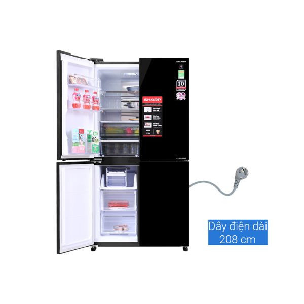 Mẫu tủ lạnh nhiều cửa Sharp còn sử dụng hệ thống làm lạnh kép Hybrid Cooling giúp hơi lạnh tỏa đều đến mọi ngóc ngách bên trong ngăn tủ, đồng thời hạn chế tình trạng lẫn mùi giữa các ngăn và góp phần mang lại tiết kiệm điện tối ưu.