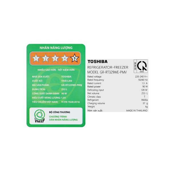Thông số kỹ thuật: Tủ lạnh Toshiba Inverter 253 lít GR-RT329WE-PMV(52)