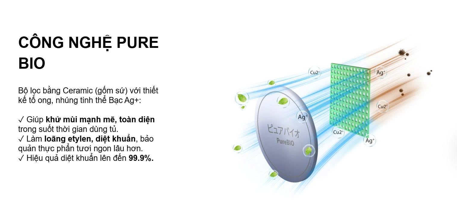 | Công nghệ kháng khuẩn, khử mùi | Công nghệ PureBio bộ lọc tinh thể Ag+ |
