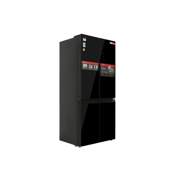 - Toshiba GR-RF677WI-PGV(22)-XK thuộc dòng tủ lạnh Multi Door có 4 cánh, thiết kế cửa kính đen cường lực sang trọng, tạo điểm nhấn cho không gian bếp gia đình thêm đẳng cấp, thời thượng.